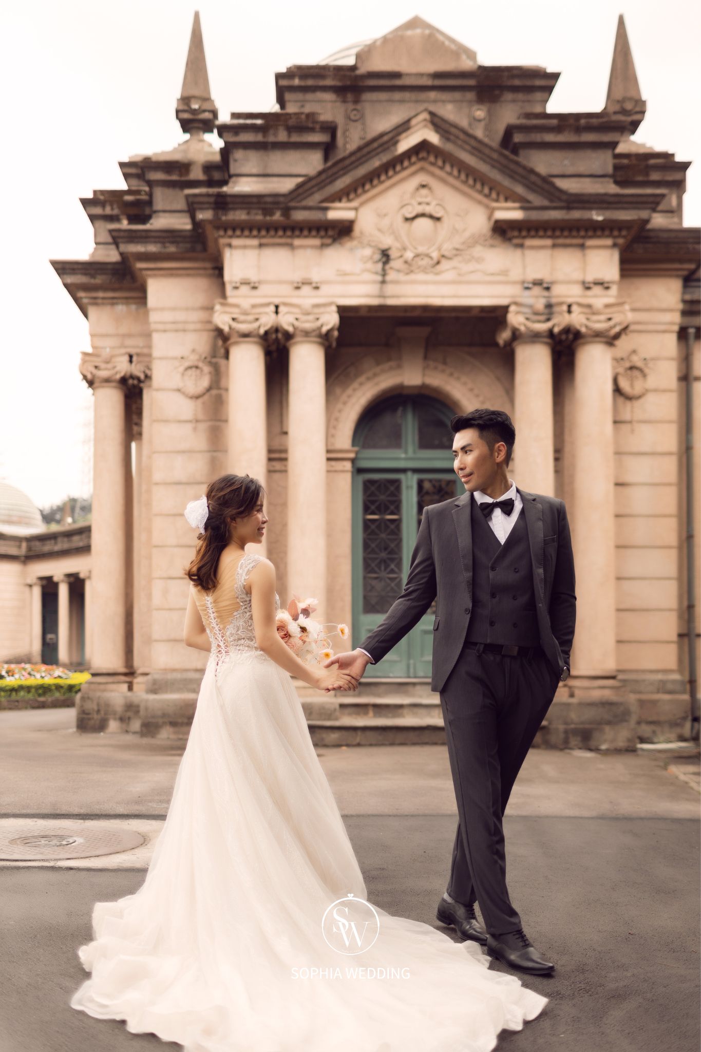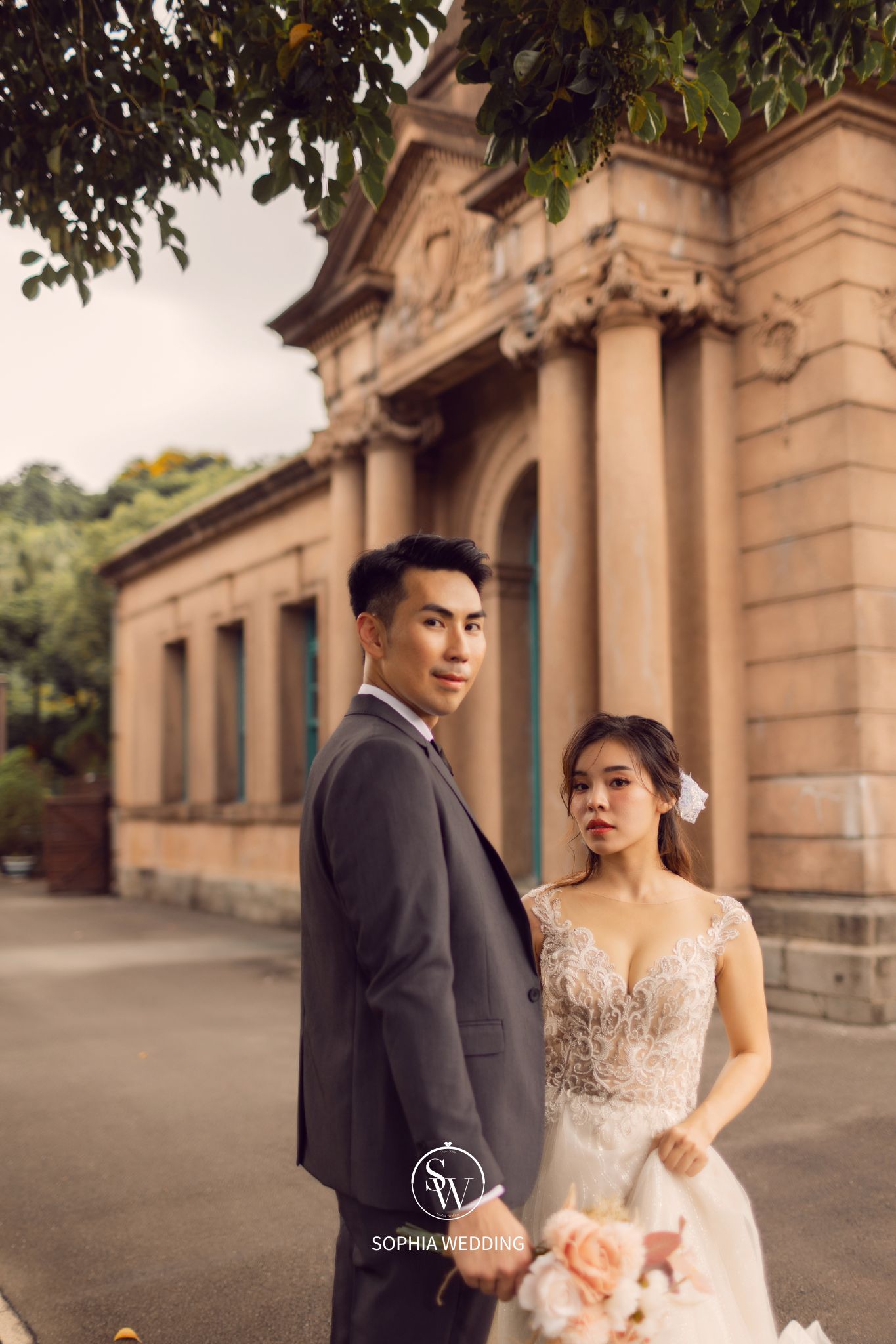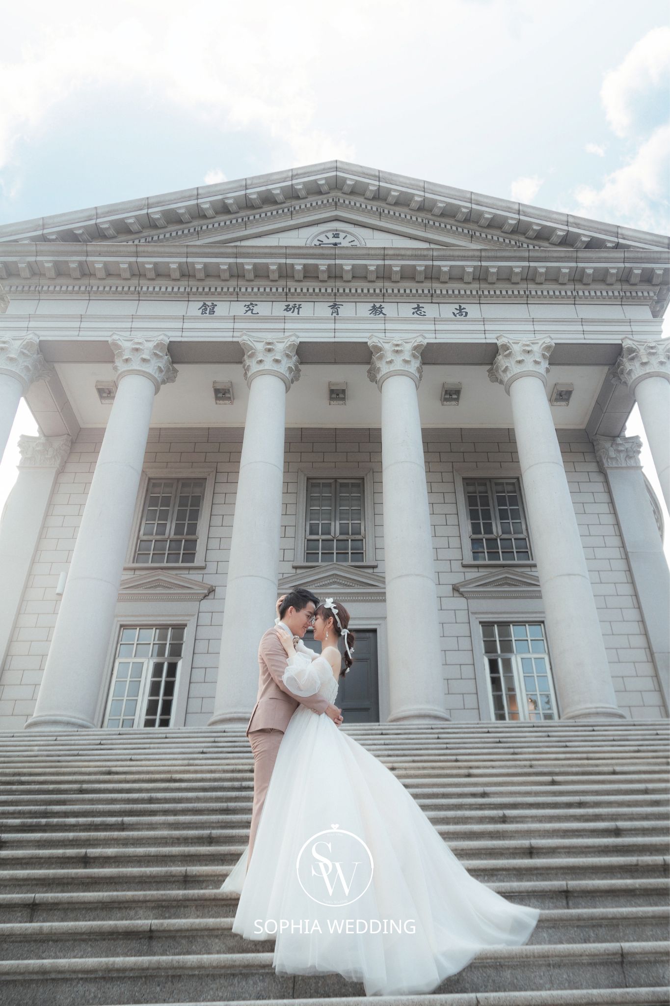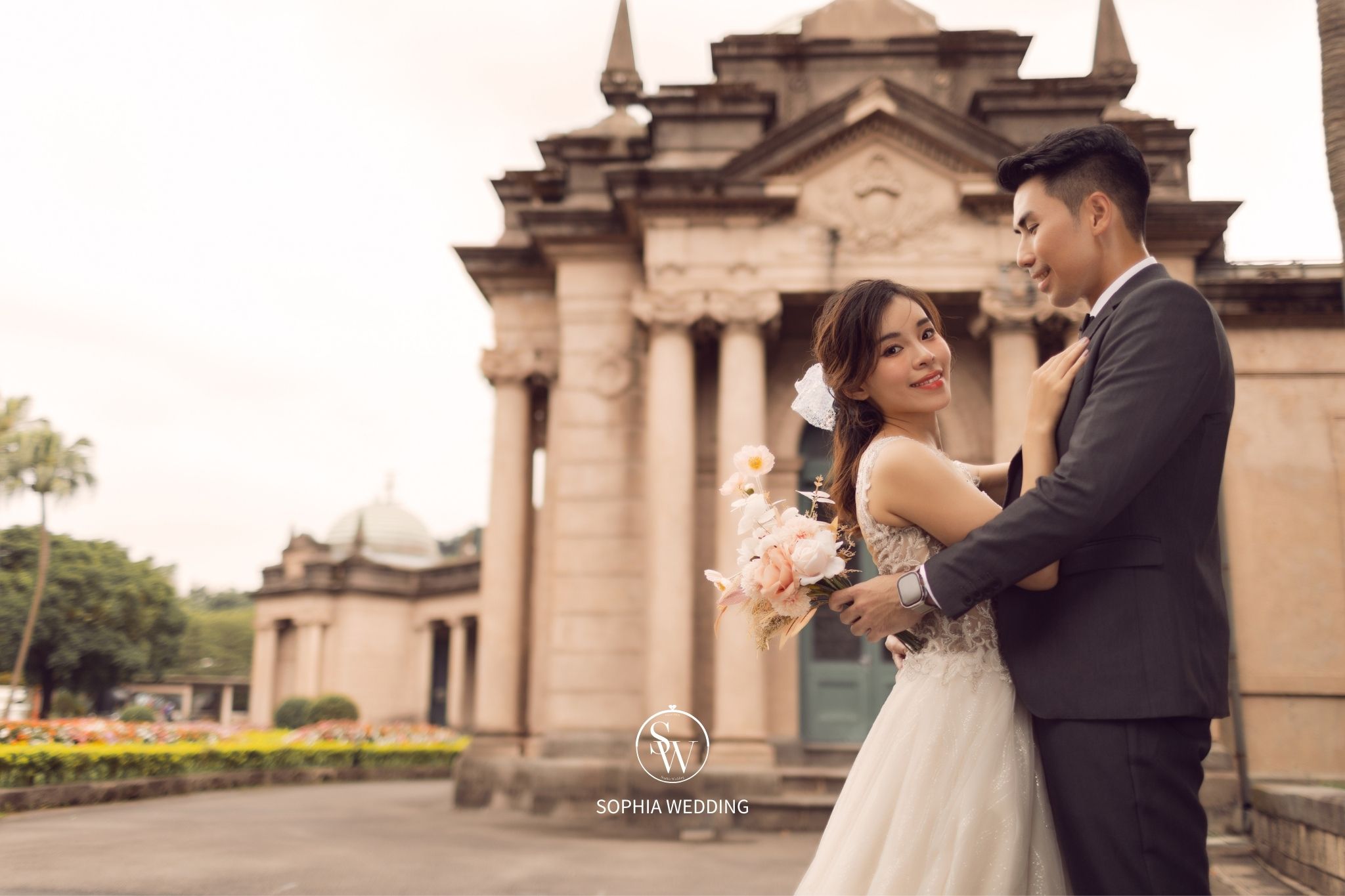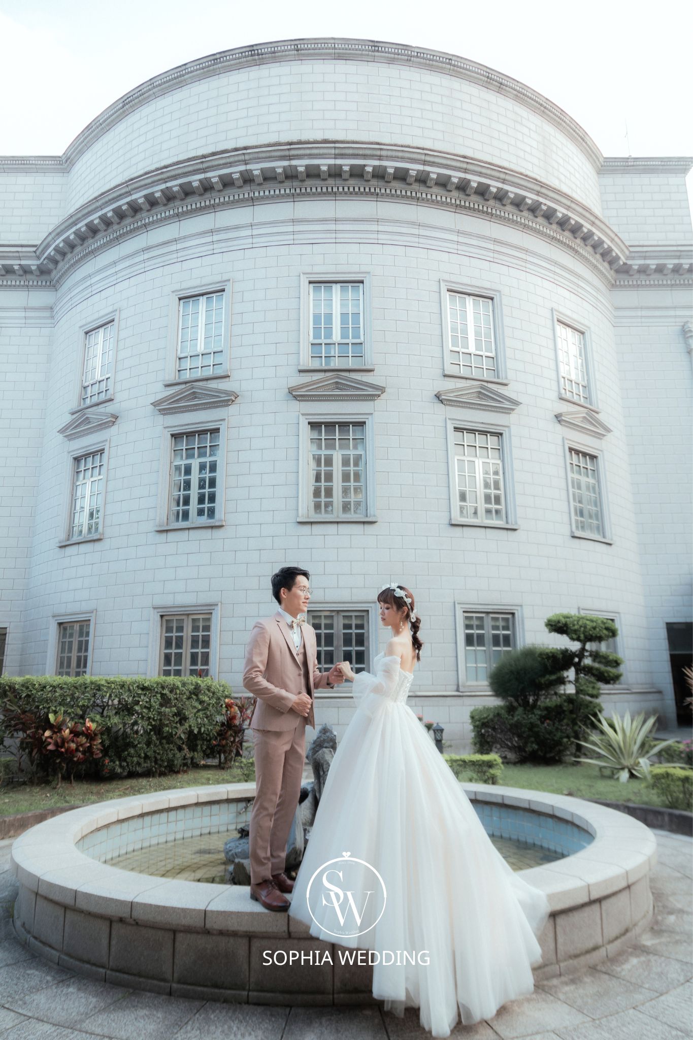 這座建築融合了古典與現代的元素,為新人們提供了一個獨特的拍攝環境。