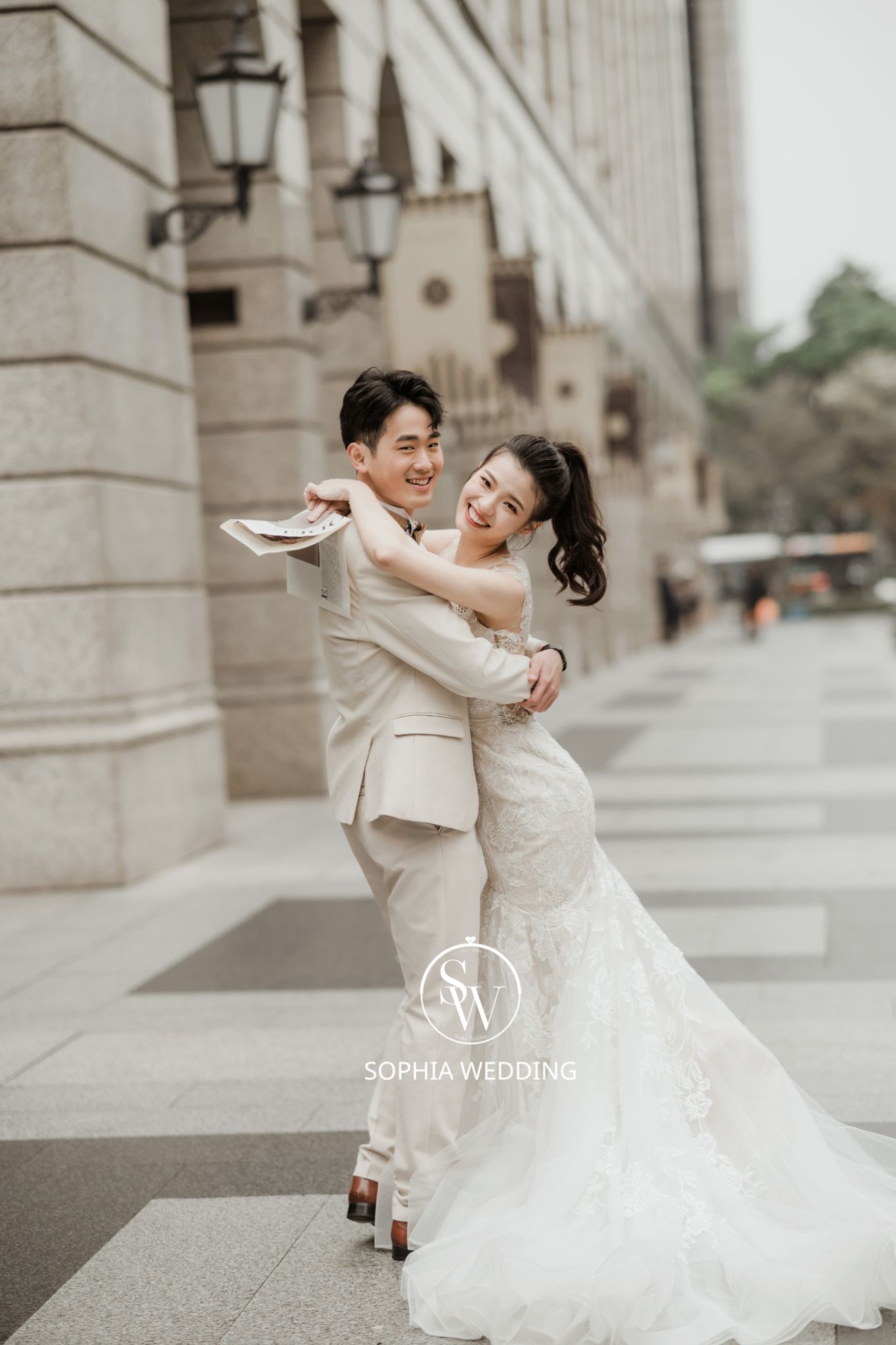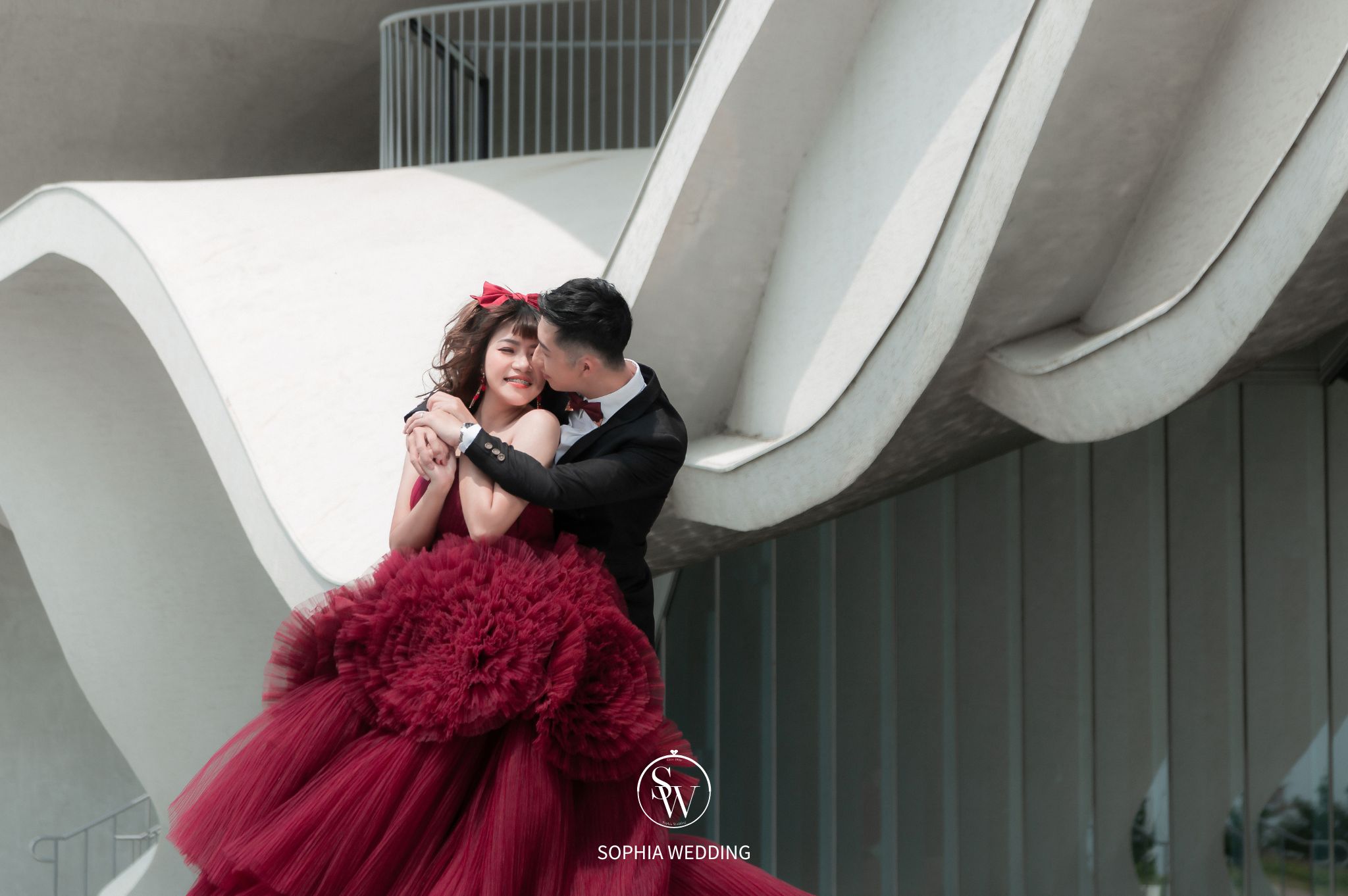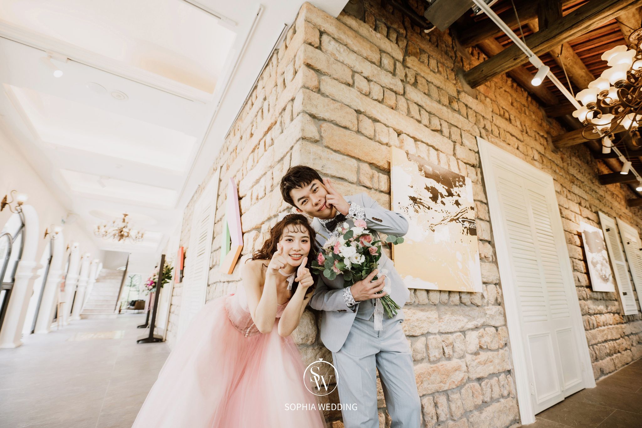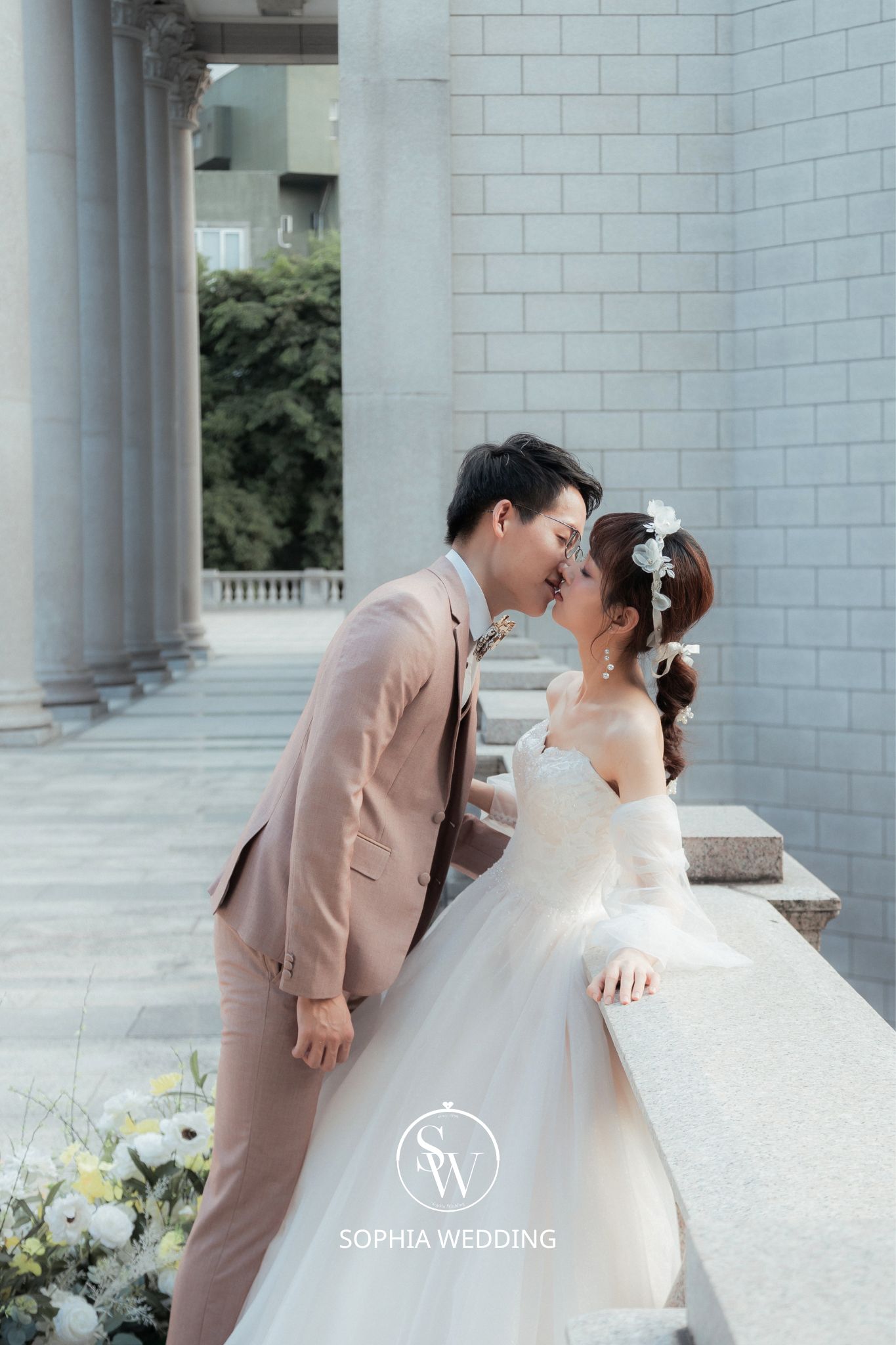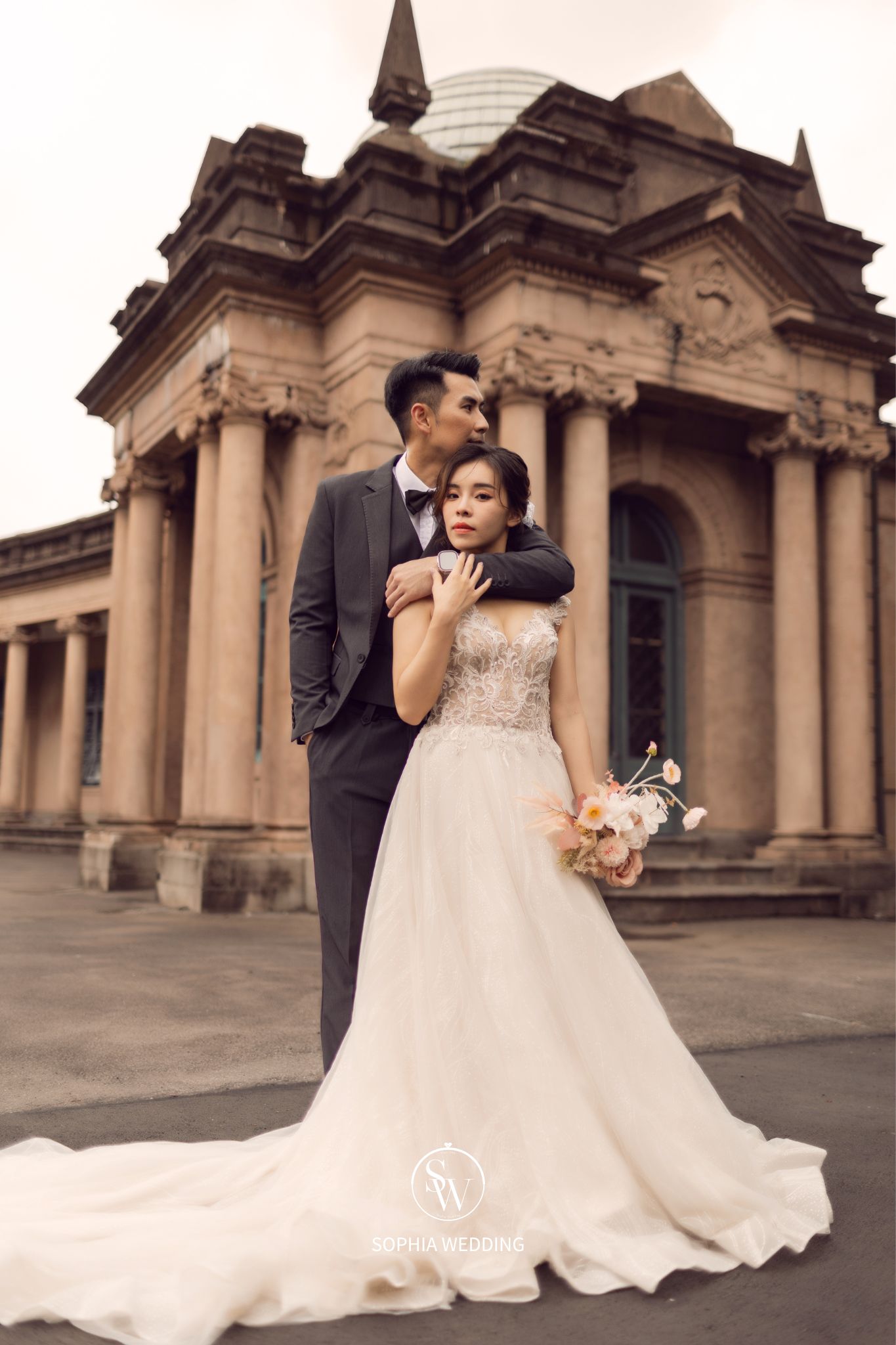這座建築融合了古典與現代的元素,為新人們提供了一個獨特的拍攝環境。