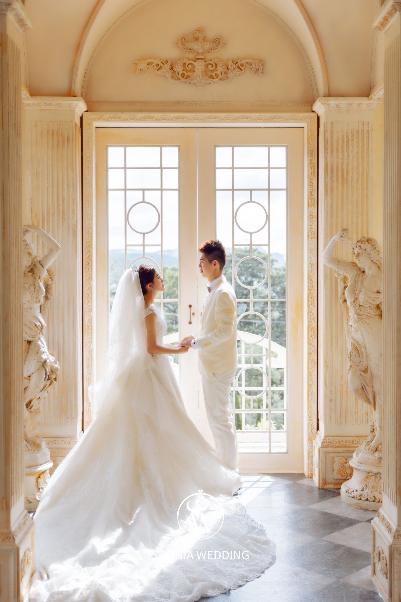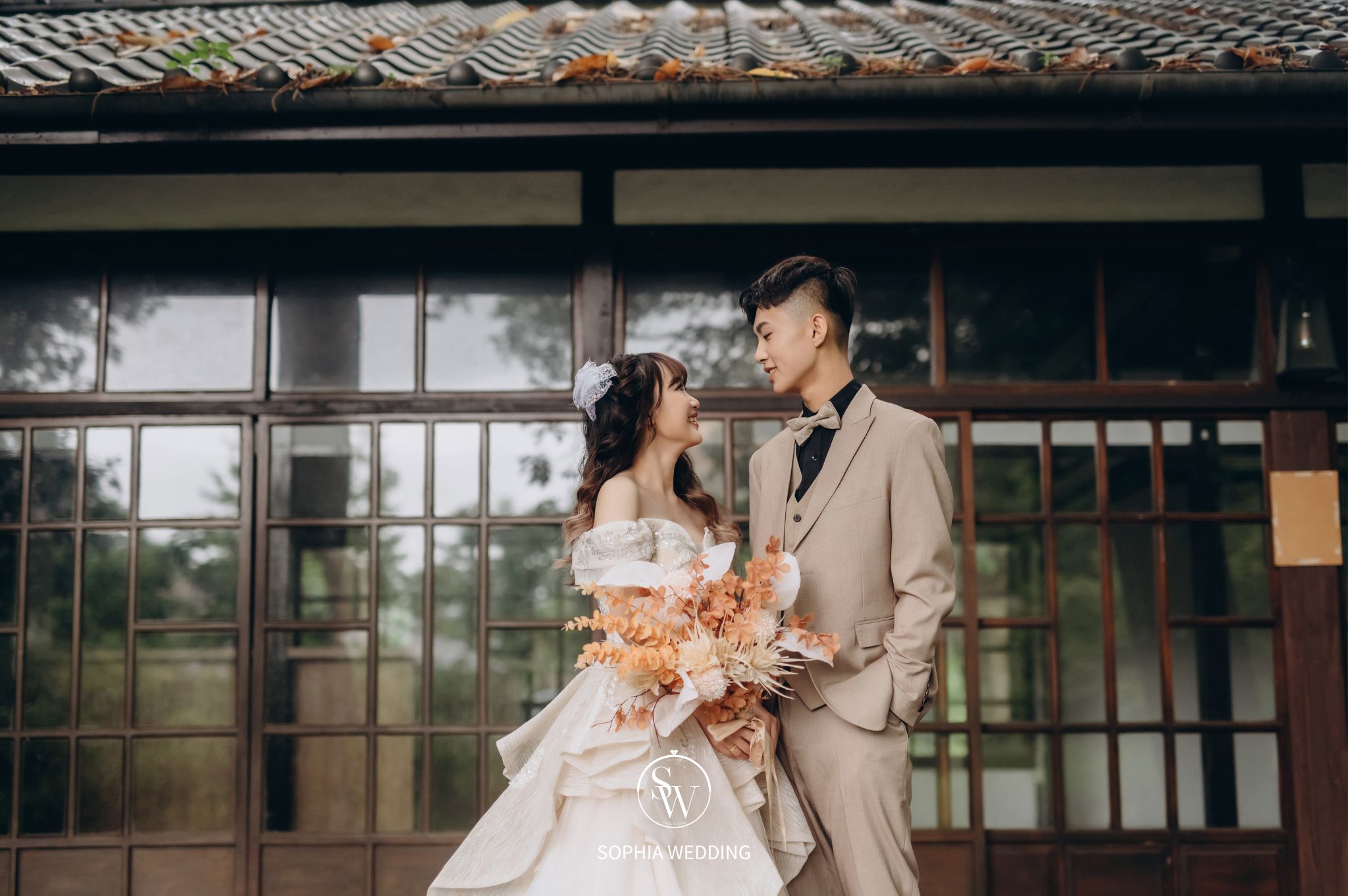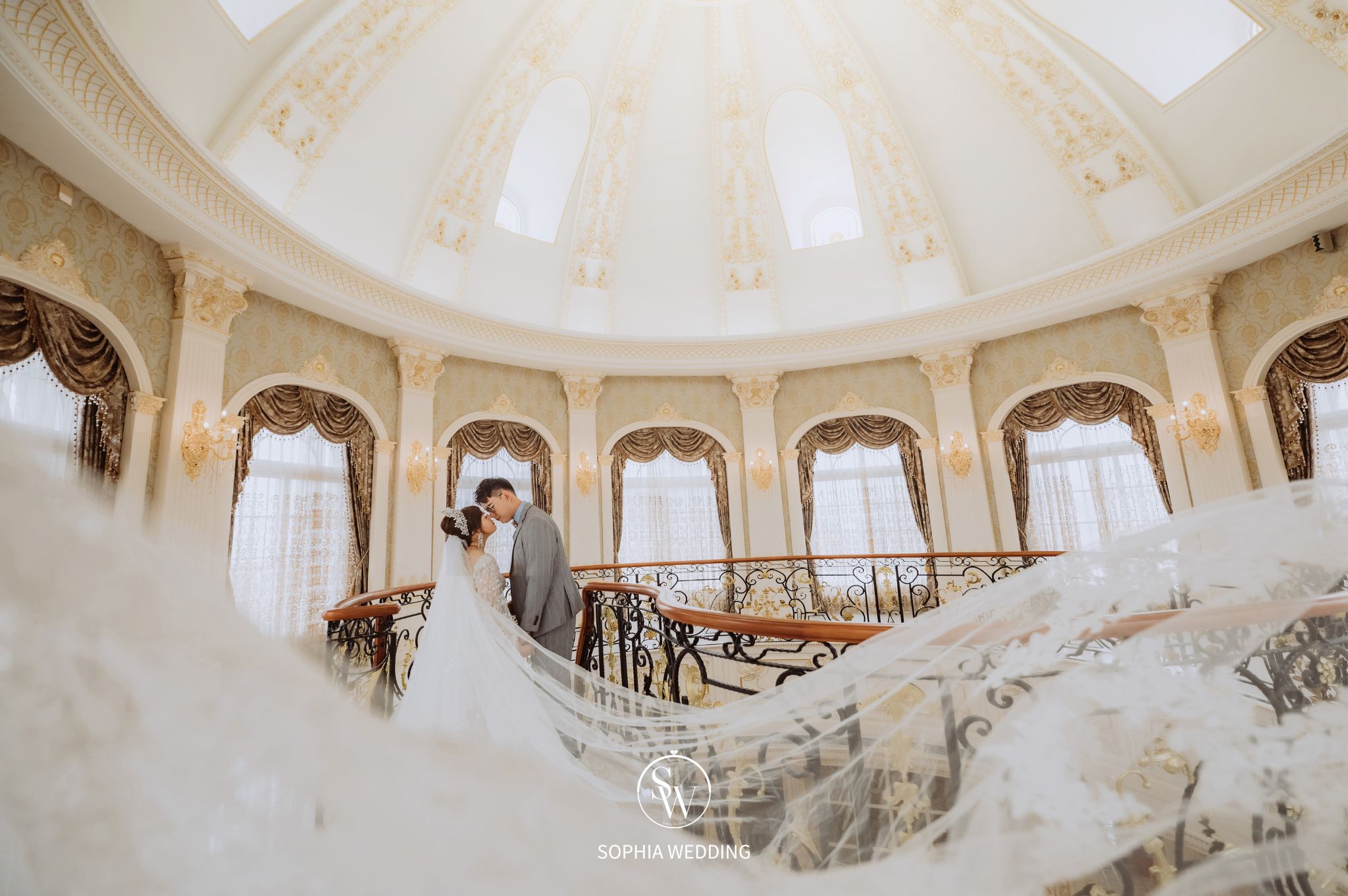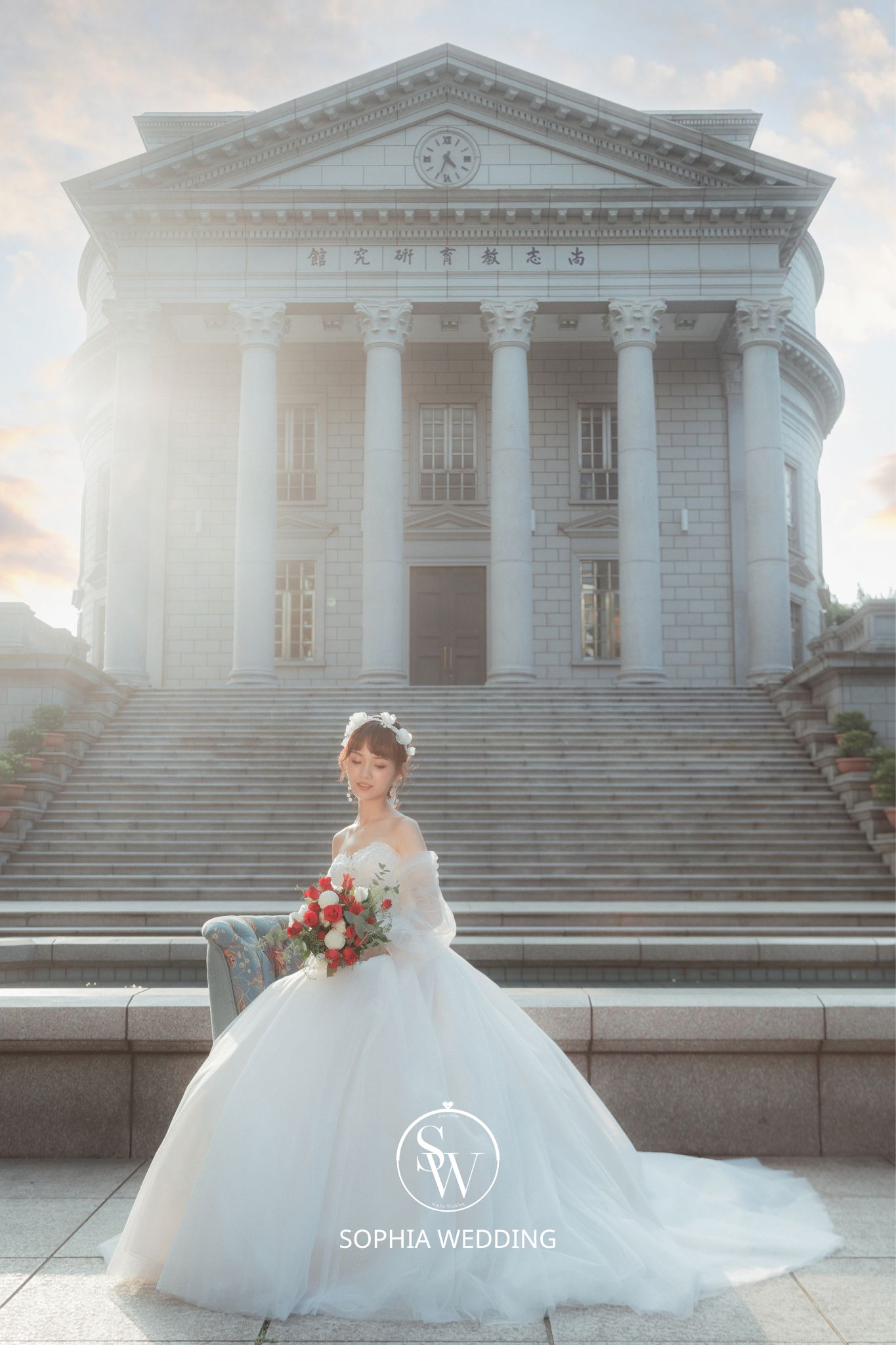 這座建築融合了古典與現代的元素,為新人們提供了一個獨特的拍攝環境。
