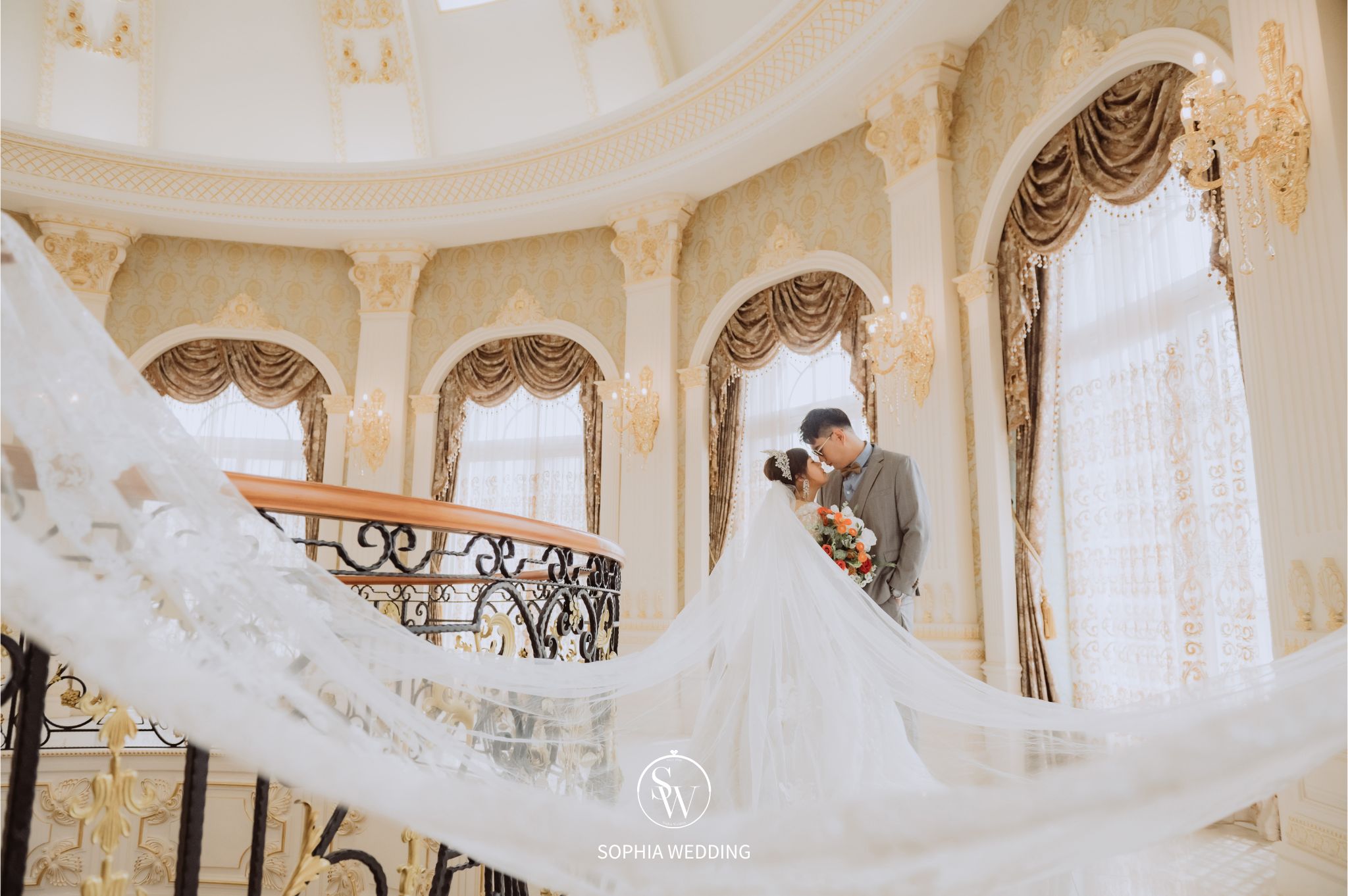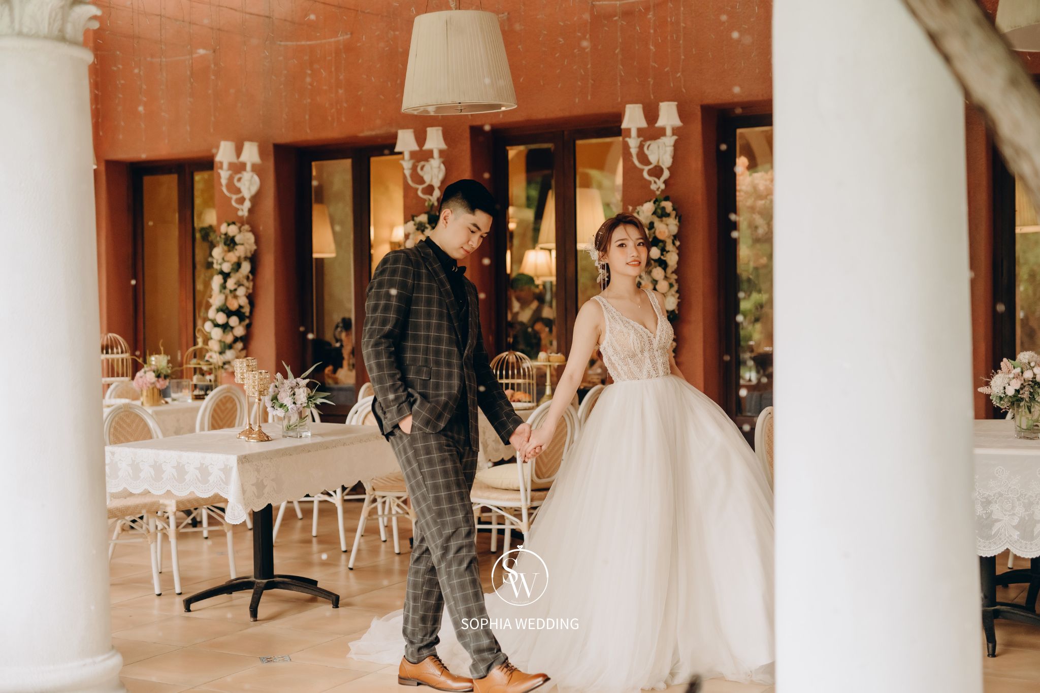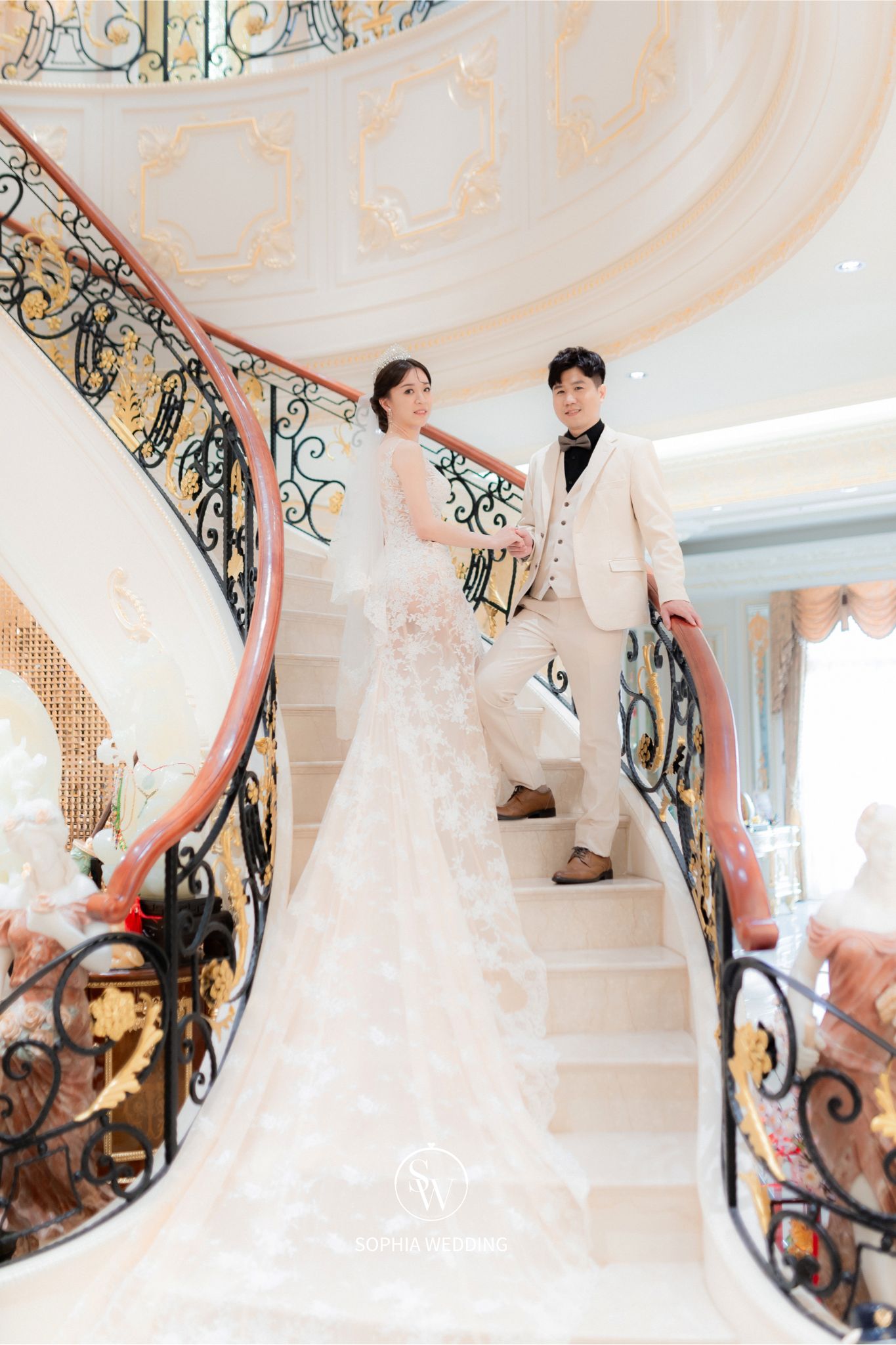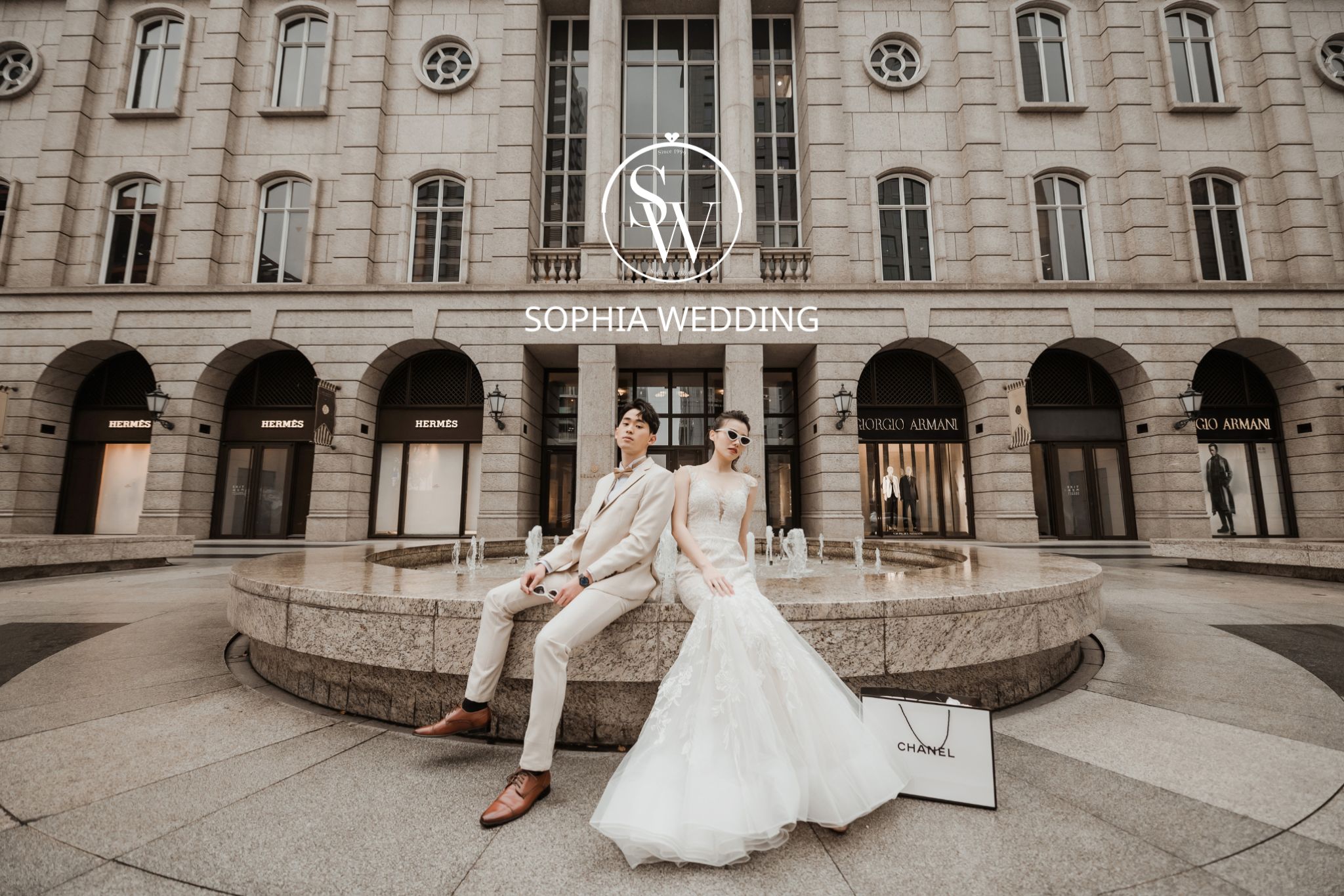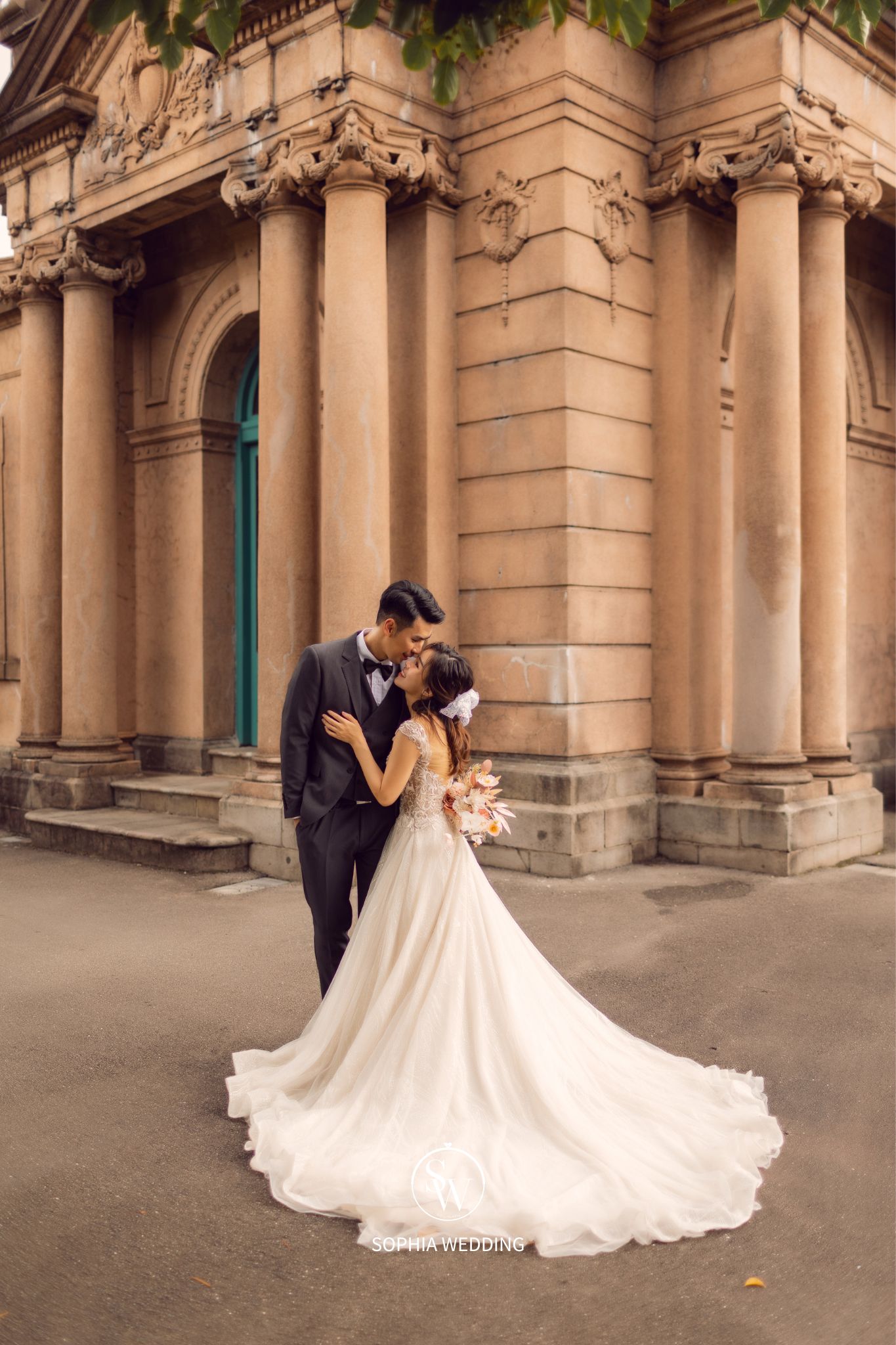 這座建築融合了古典與現代的元素,為新人們提供了一個獨特的拍攝環境。