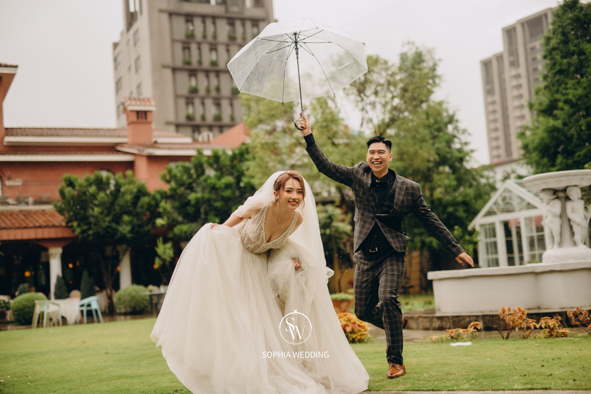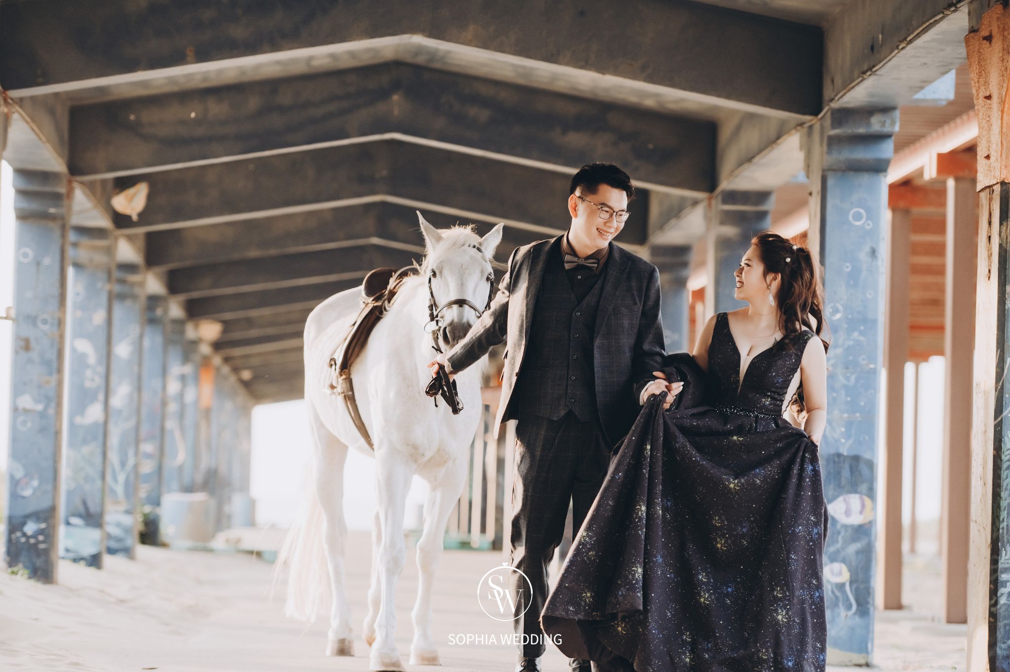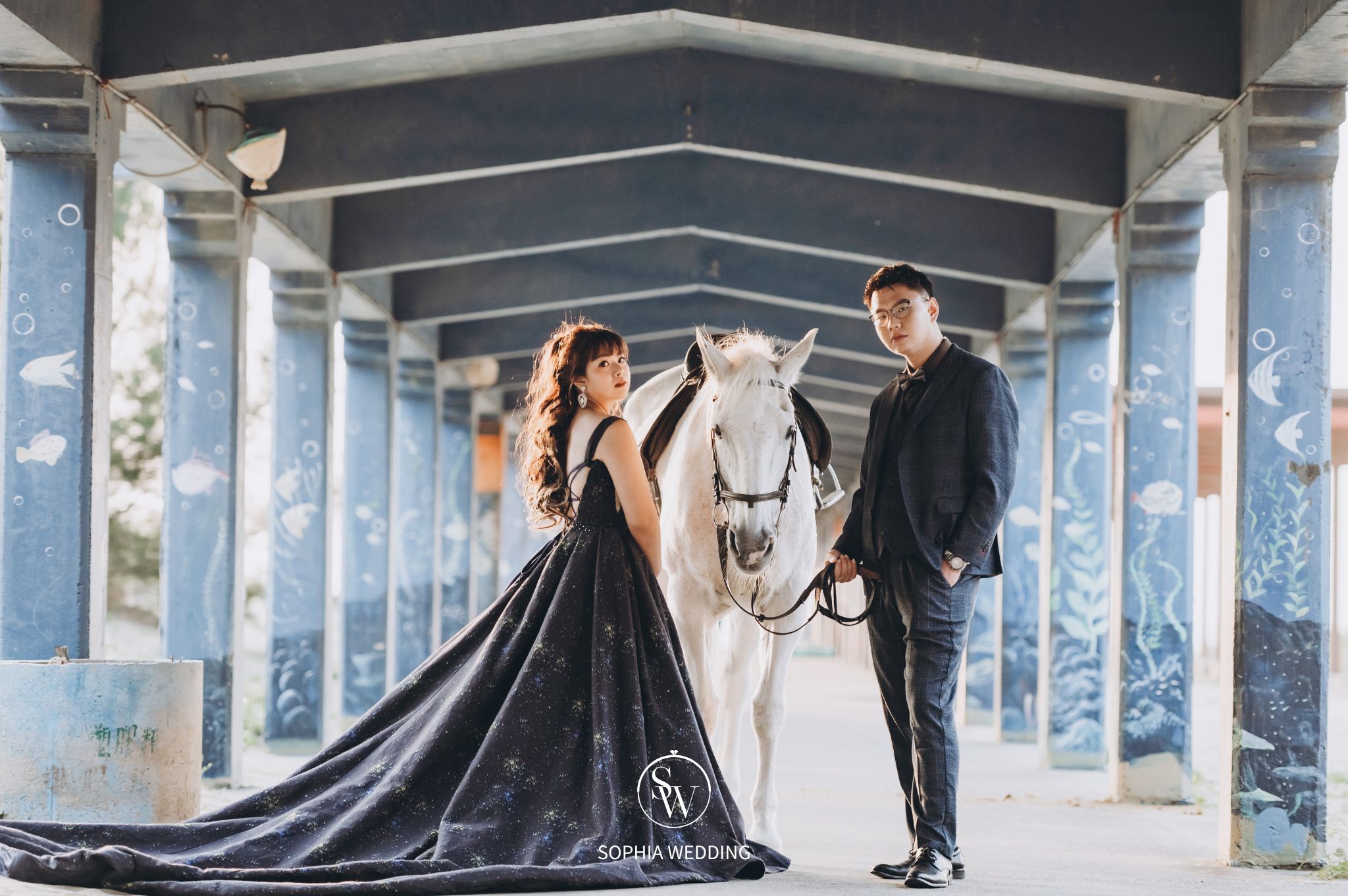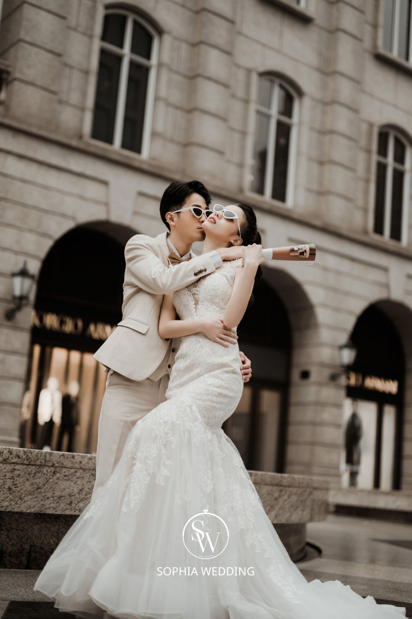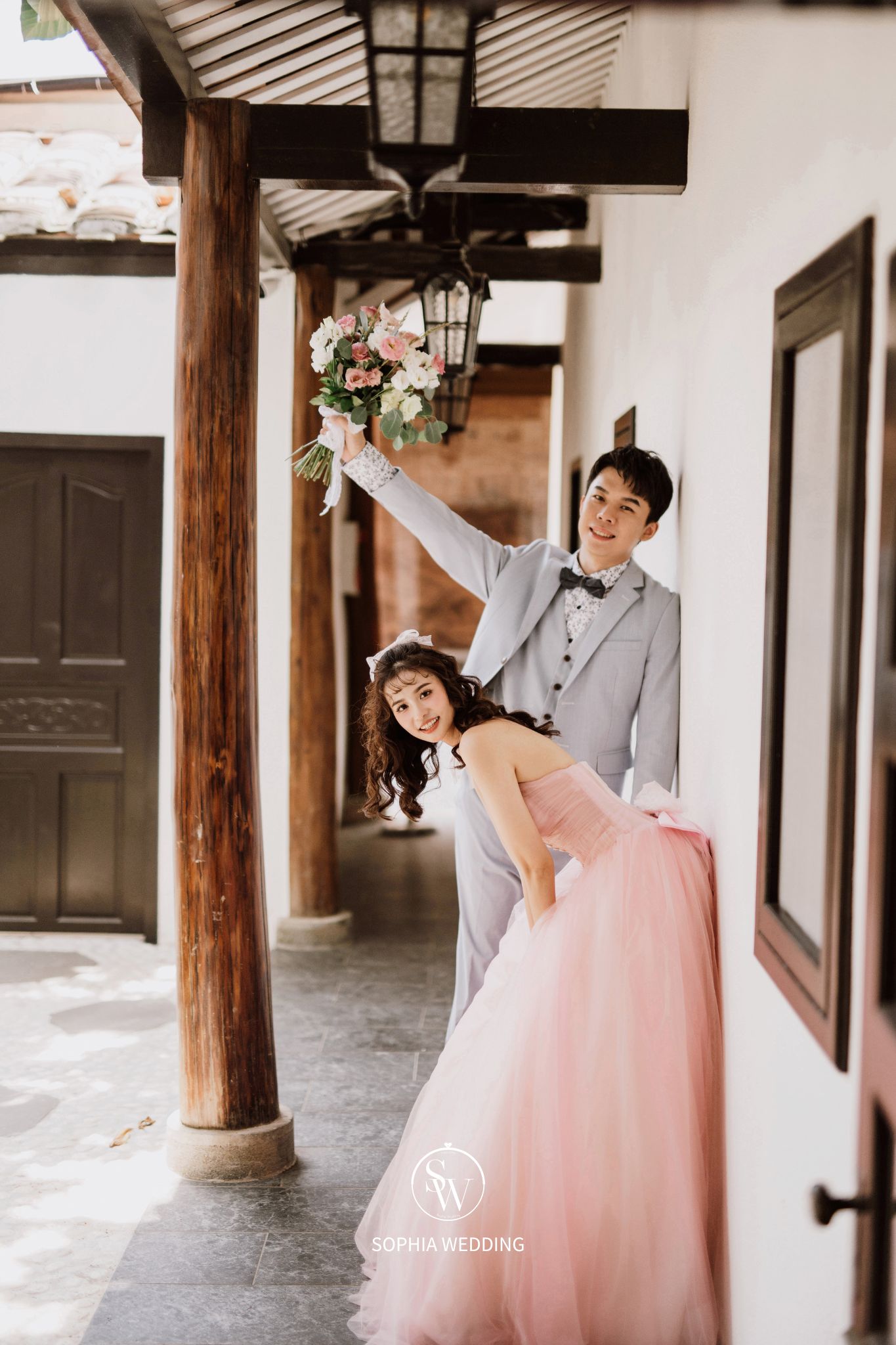 這座建築融合了古典與現代的元素,為新人們提供了一個獨特的拍攝環境。