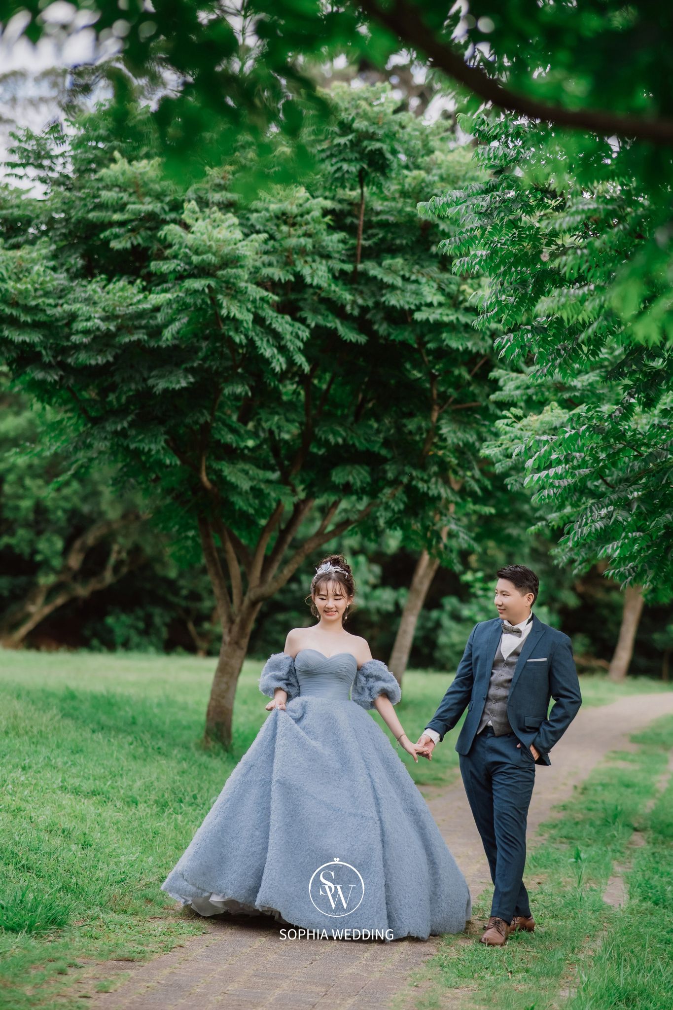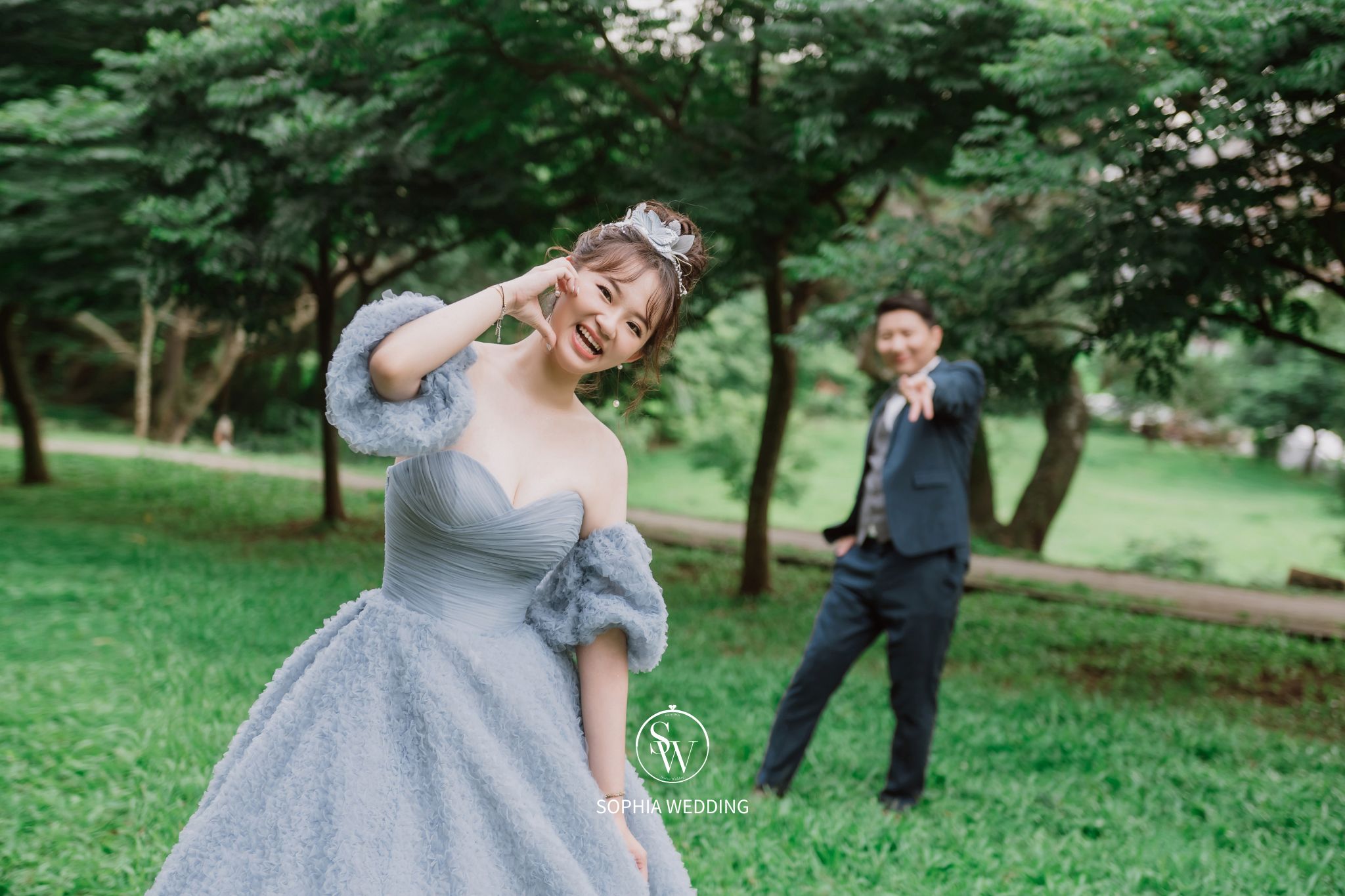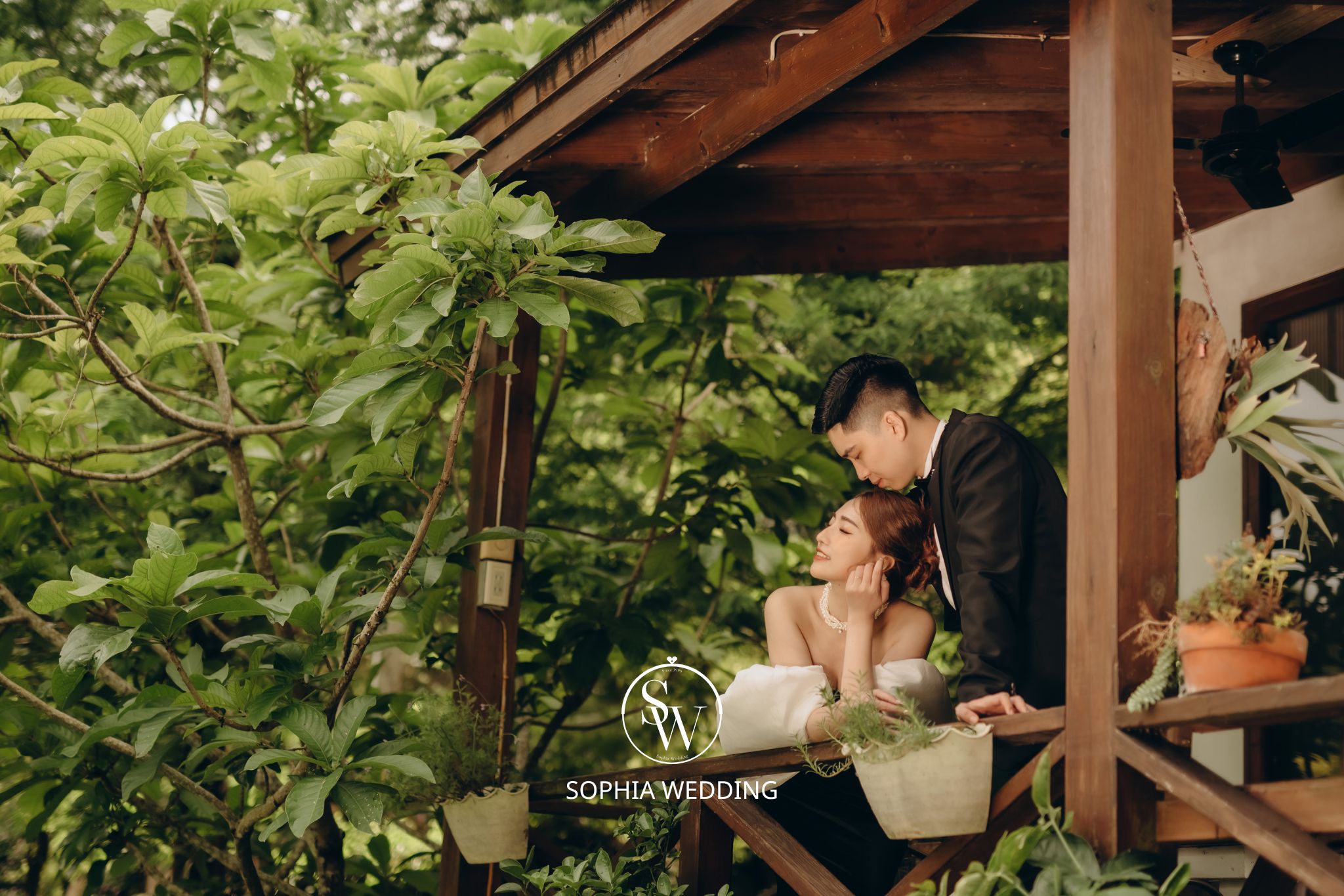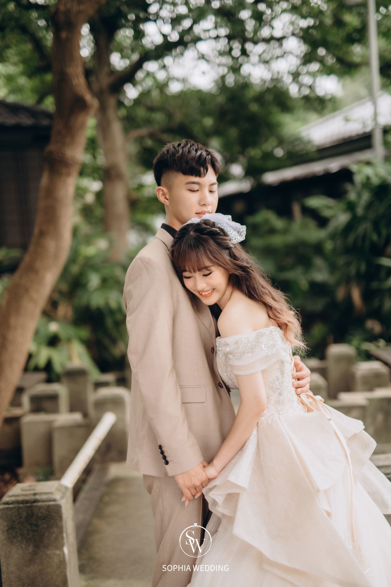 溪流和優雅的小徑,為新人營造了一個浪漫自然的拍攝環境。專業攝影師能捕捉到新人在這片綠意盎然的樹林中,
