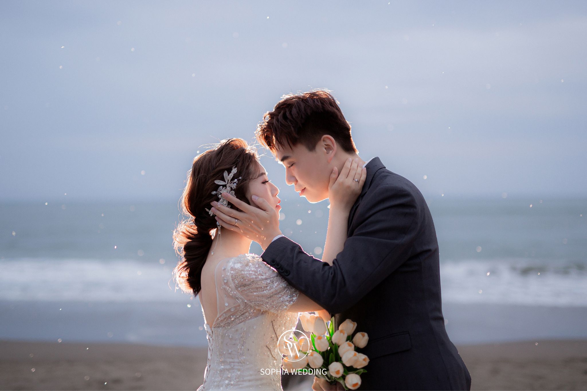 這裡的沙灘、海岸線和岩石都提供了多樣化的背景,讓新人的婚紗照充滿了浪漫與自然的氛圍。