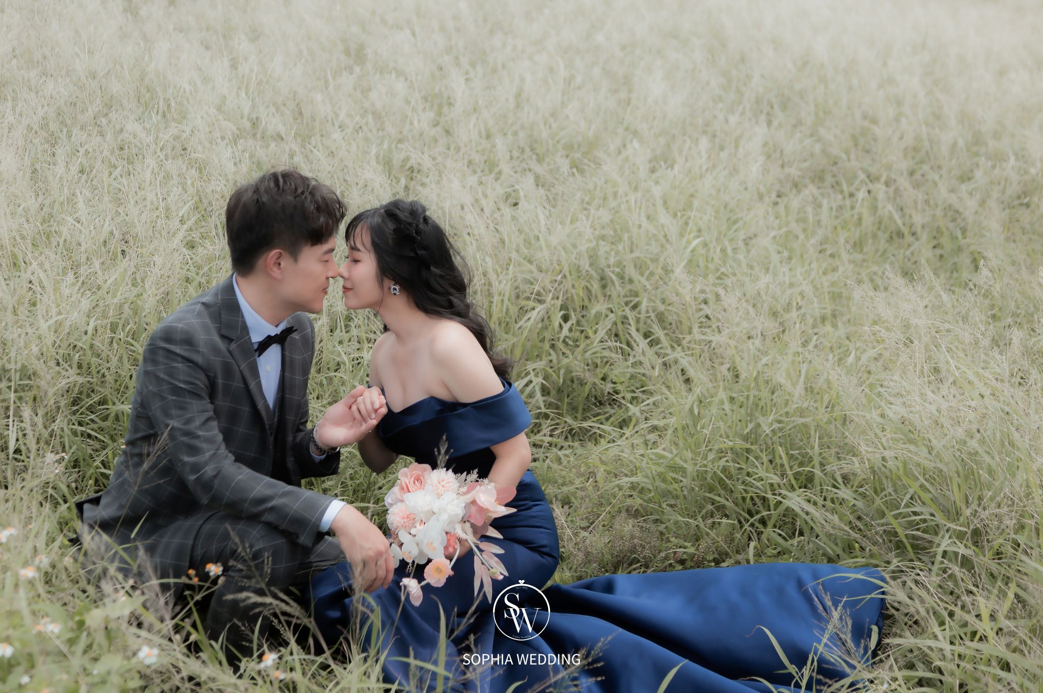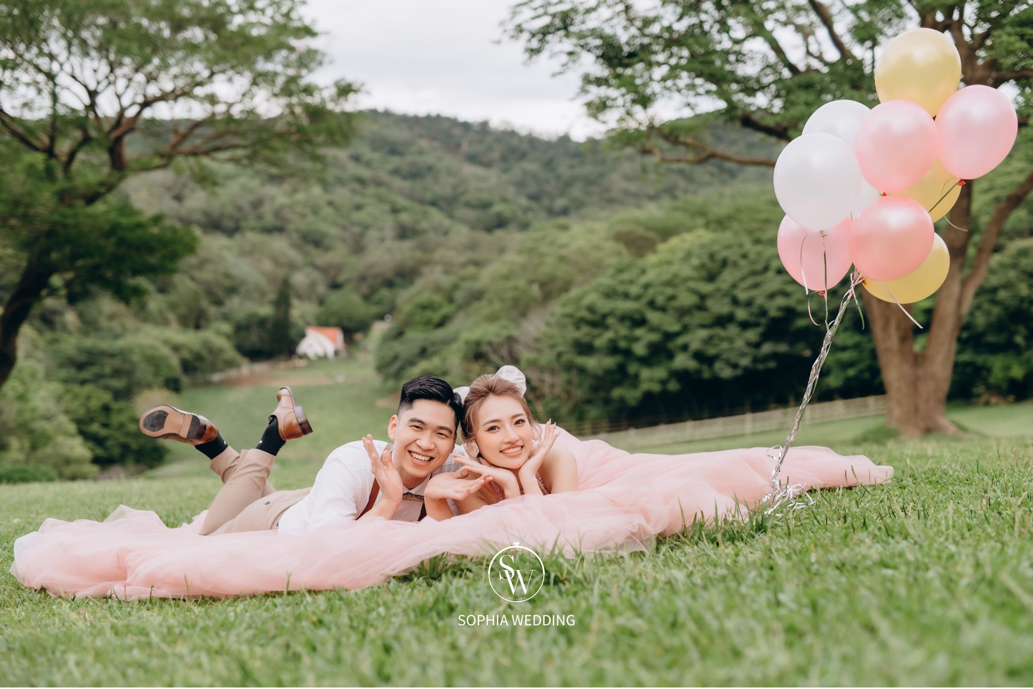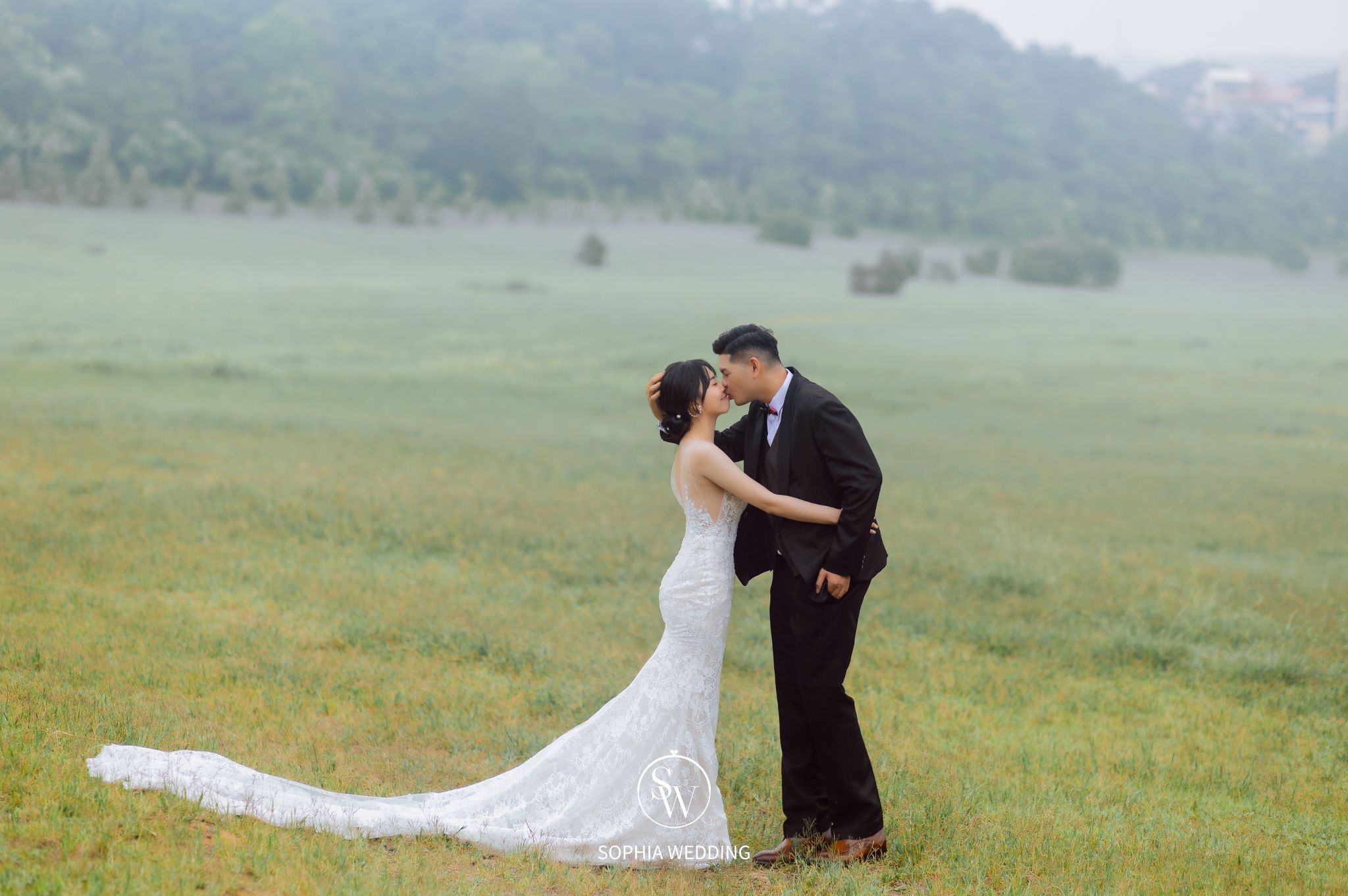這片蔥綠色的草原,是攝影師和新人的最愛。無論是白紗還是禮服,