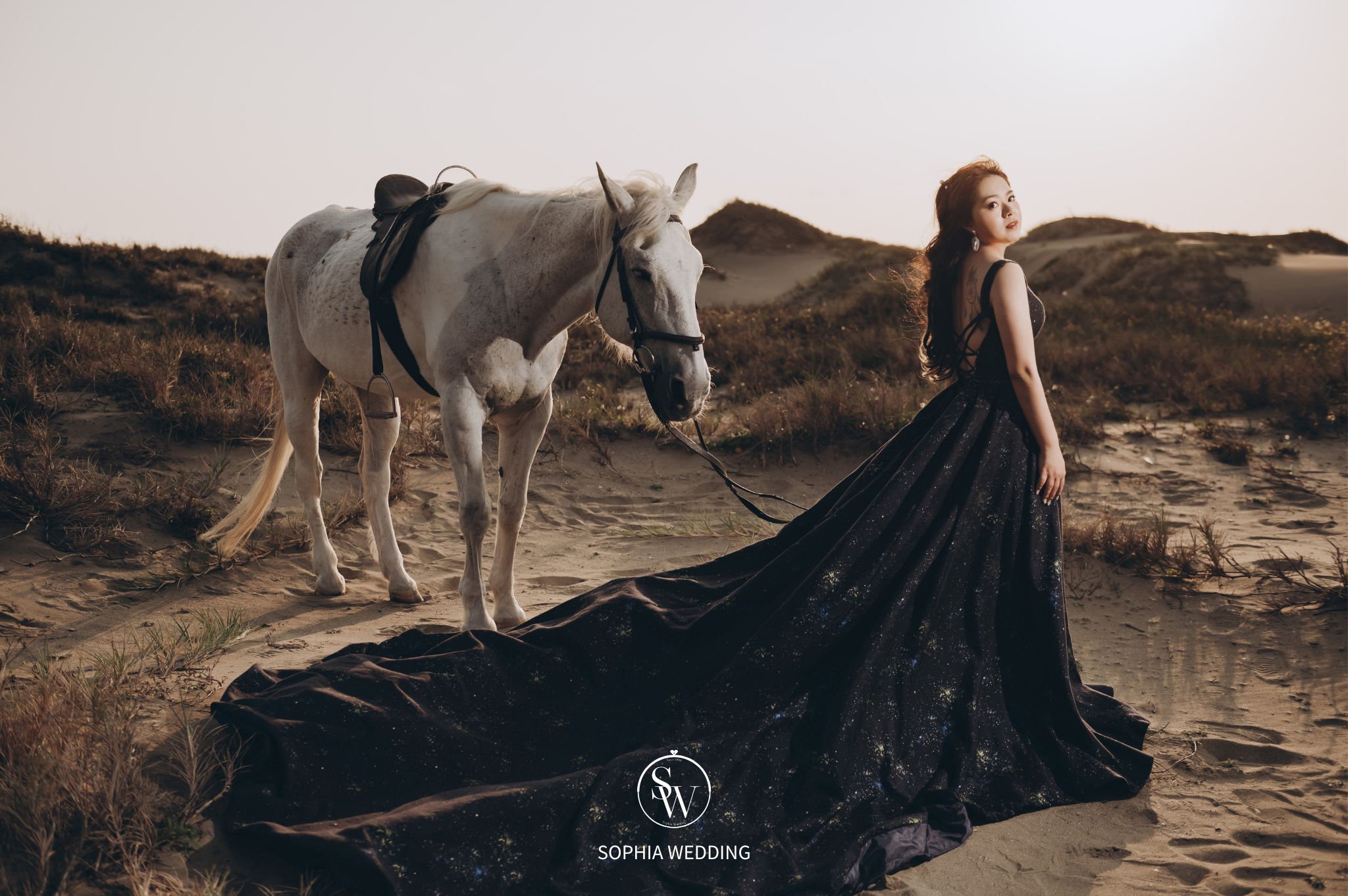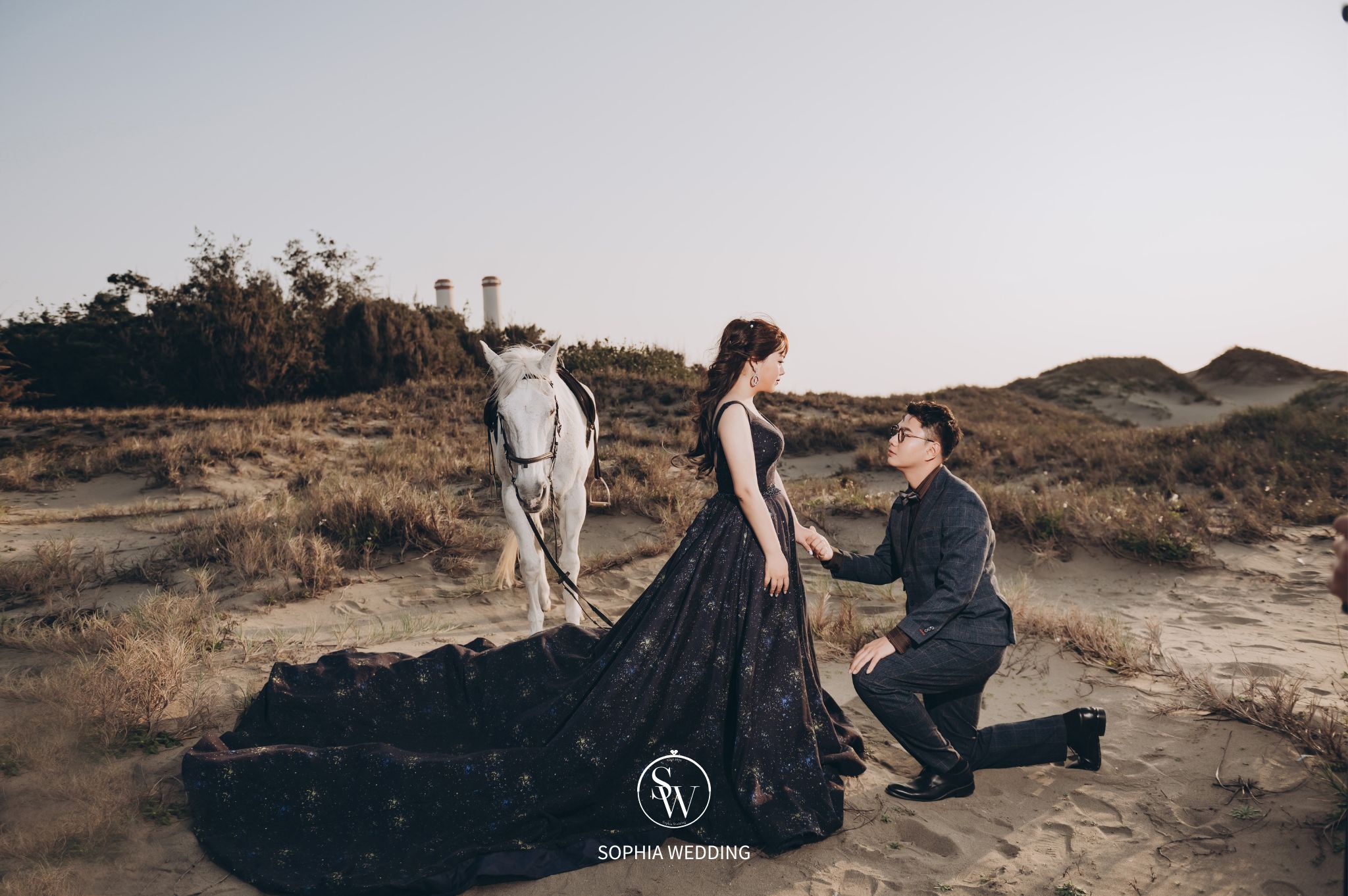 為新人們提供了一個富有異國情調的拍攝場景。沙丘上的柔軟沙子,為新人們的婚紗照增添了自然優雅的氛圍。